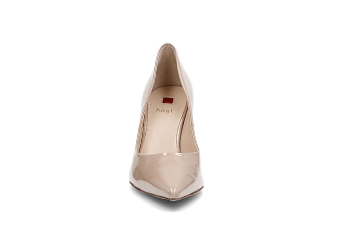 En nydelig pumps i skinnlakk. Fôret med mykt kalveskinn. Skoen har en fantastisk komfort. Lærsåle med gummi for maks eleganse og fleksibilitet. 8,5 cm hæl.